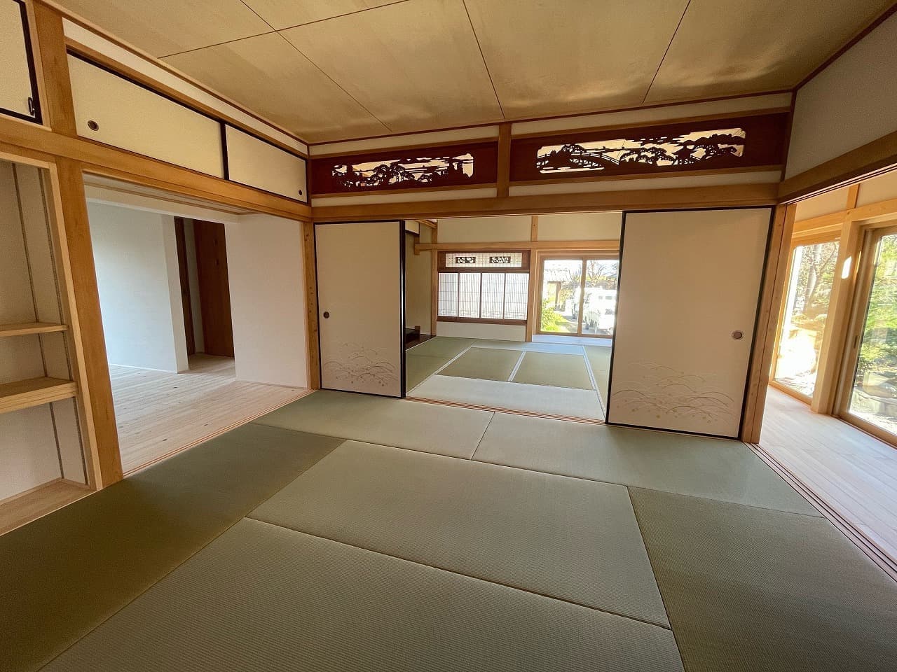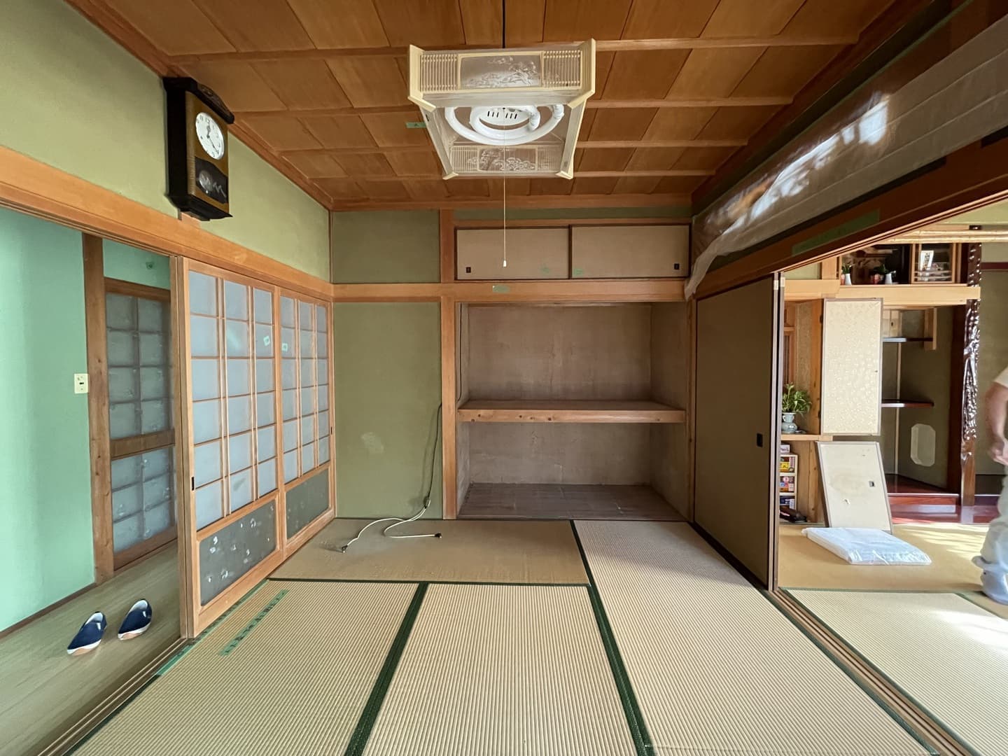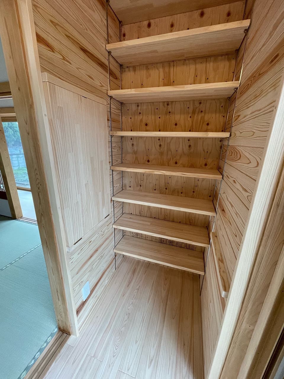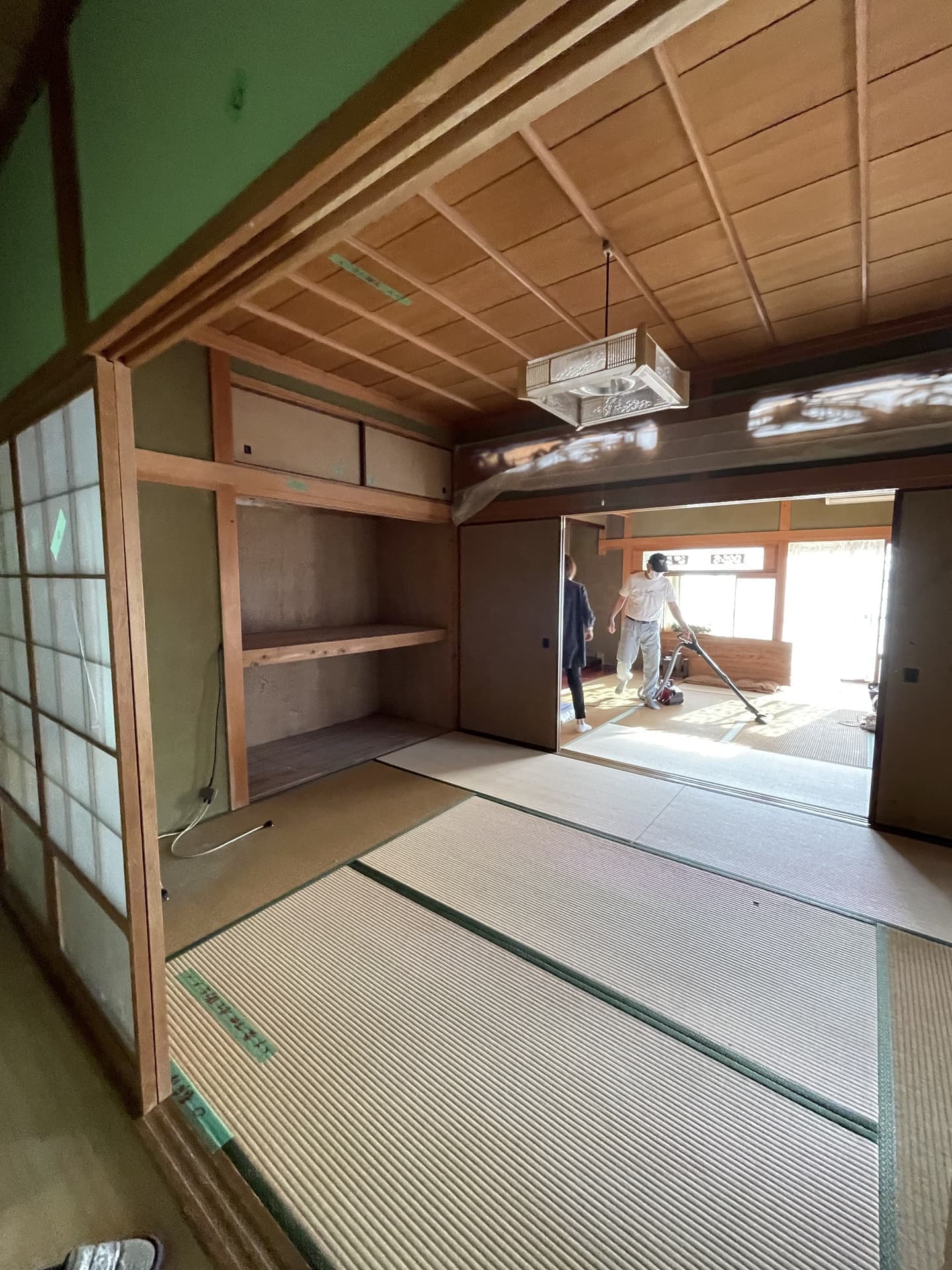木造住宅/築46年/民家リノベーション/内装 桧15mmフローリング 内装壁珪藻土 天井杉羽目板/シナ合板 APW樹脂サッシ キッチンクリナップSK 断熱化(床ウレタン吹付80㎜・天井ウレタン吹付110㎜) 防蟻処理 ・玄関引戸 アウターシェード 合併浄化槽設置