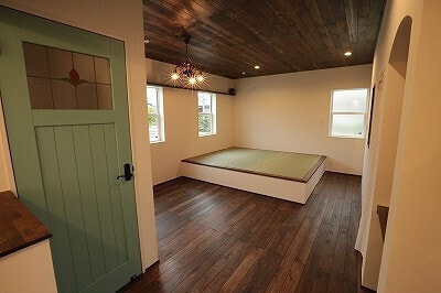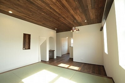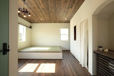 木造軸組み工法/屋根洋風瓦葺き/内断熱セルロースファイバ/外断熱EPS/外壁西洋漆喰/内装床ヒノキ15㎜/内装壁珪藻土/内装天井珪藻土/ワックス米ぬかベースのこめっとさん/YKK樹脂サッシAPW310/建具ウッドワン既製品/LIXILシステムバス/オリジナル洗面台/タンクレストイレ(パナソニック)/玄関ドアYKK/キッチン(ウッドワン)/国産ワラ床畳/オールアース施工