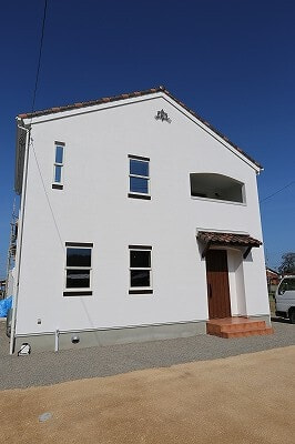 西条市で開催した完成見学会へお越しいただいたのが最初のきっかけで、その後何度か見学会へお越し頂く中で、弊社の家づくりに共感いただき、家づくりがスタートしました。白がお好みでしたので、外観は西洋漆喰のプロヴァンス仕様、内観は珪藻土と自然塗料で着色した木を基調にコーディネートし、落ち着きのある空間に仕上がりました。