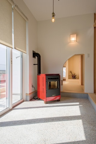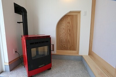 木造軸組み工法/屋根洋風瓦葺き/内断熱セルロースファイバ/外断熱EPS/外壁西洋漆喰/内装床ヒノキ15㎜/内装壁珪藻土/内装天井珪藻土/ワックス米ぬかベースのこめっとさん/YKK樹脂サッシAPW330/建具無垢栂ドア/システムバス/オリジナル洗面台/タンクレストイレ(パナソニック)/玄関ドアYKK/キッチン(永大産業)/オーダーワークカウンター/国産ワラ床畳/オールアース施工/ペレットストーブ(さいかい産業)/外構(高橋造園)/太陽熱ガス給湯エネワイター/モイス/ミーレ食洗機