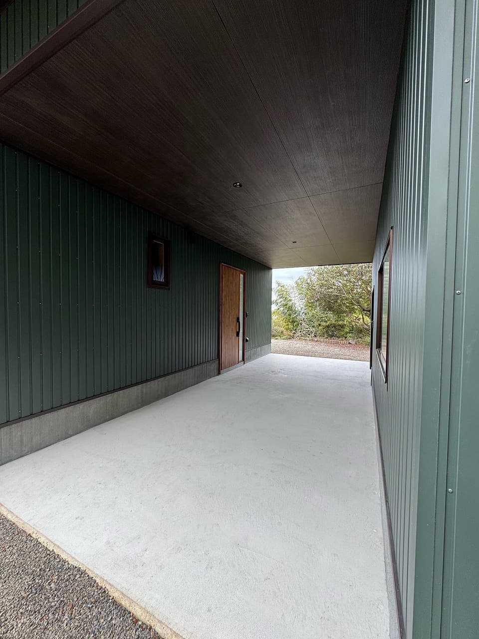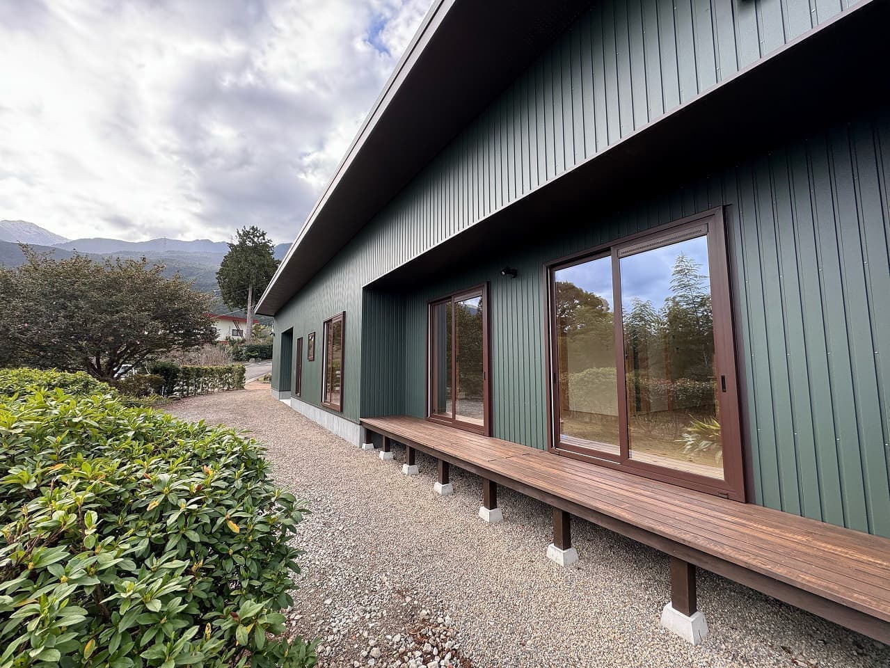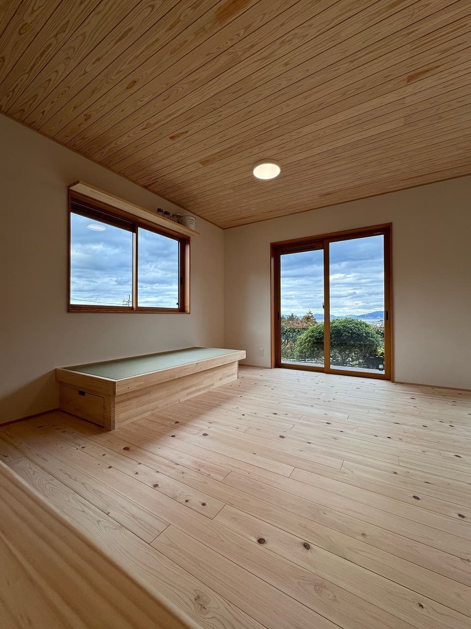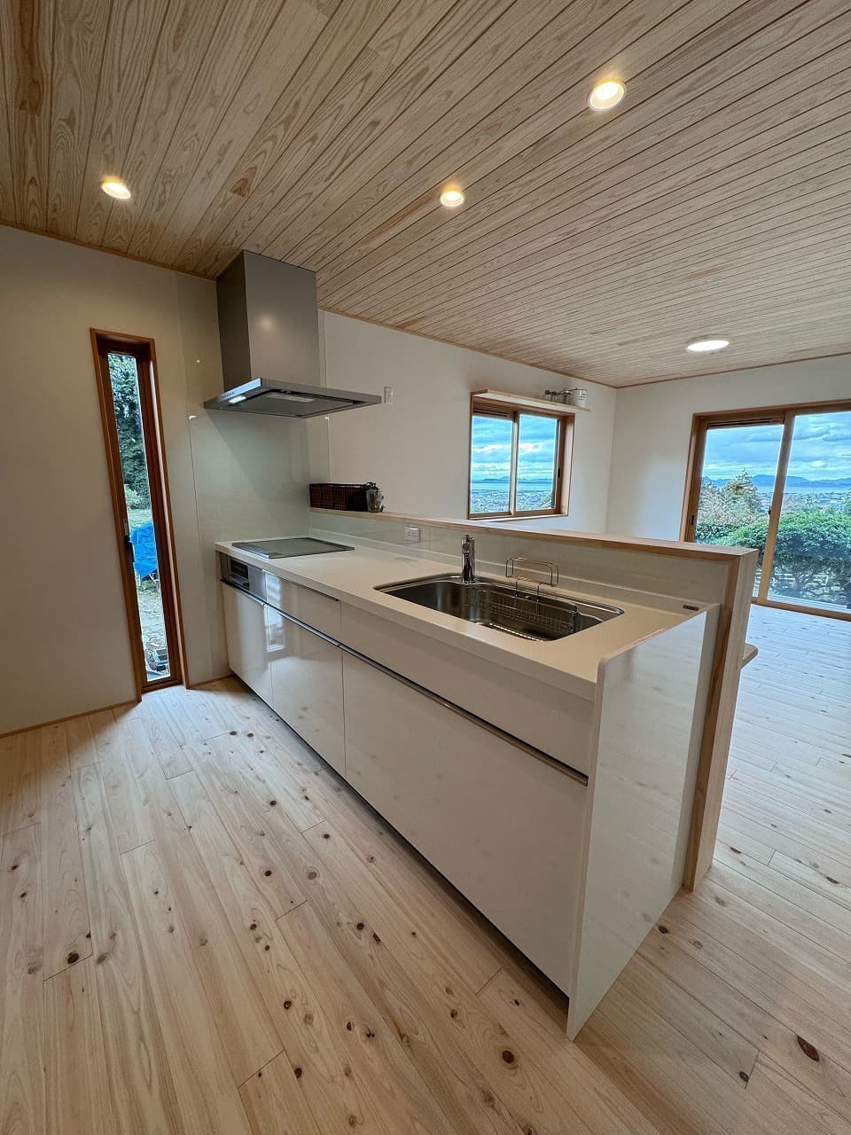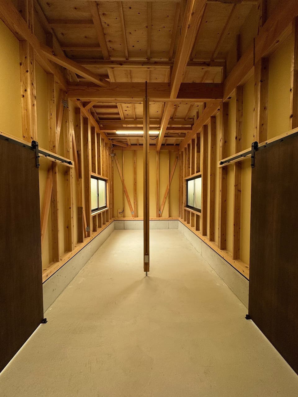 木造軸組み工法/屋根ガルバリウム鋼板縦ハゼ葺/断熱 天井セルロースファイバ・床下壁ウレタンフォーム吹付/外壁ガルバリウム鋼板/内装床ヒノキ15㎜/内装珪藻土・土壁パネルモイス/YKK樹脂サッシAPW330/木建具オリジナル/LIXILシステムバス/LIXIL システムキッチン/タンクレストイレ(パナソニック)/玄関ドアYKKスマートKEY/国産畳/長期優良住宅認定/耐震等級3/省エネ等級5